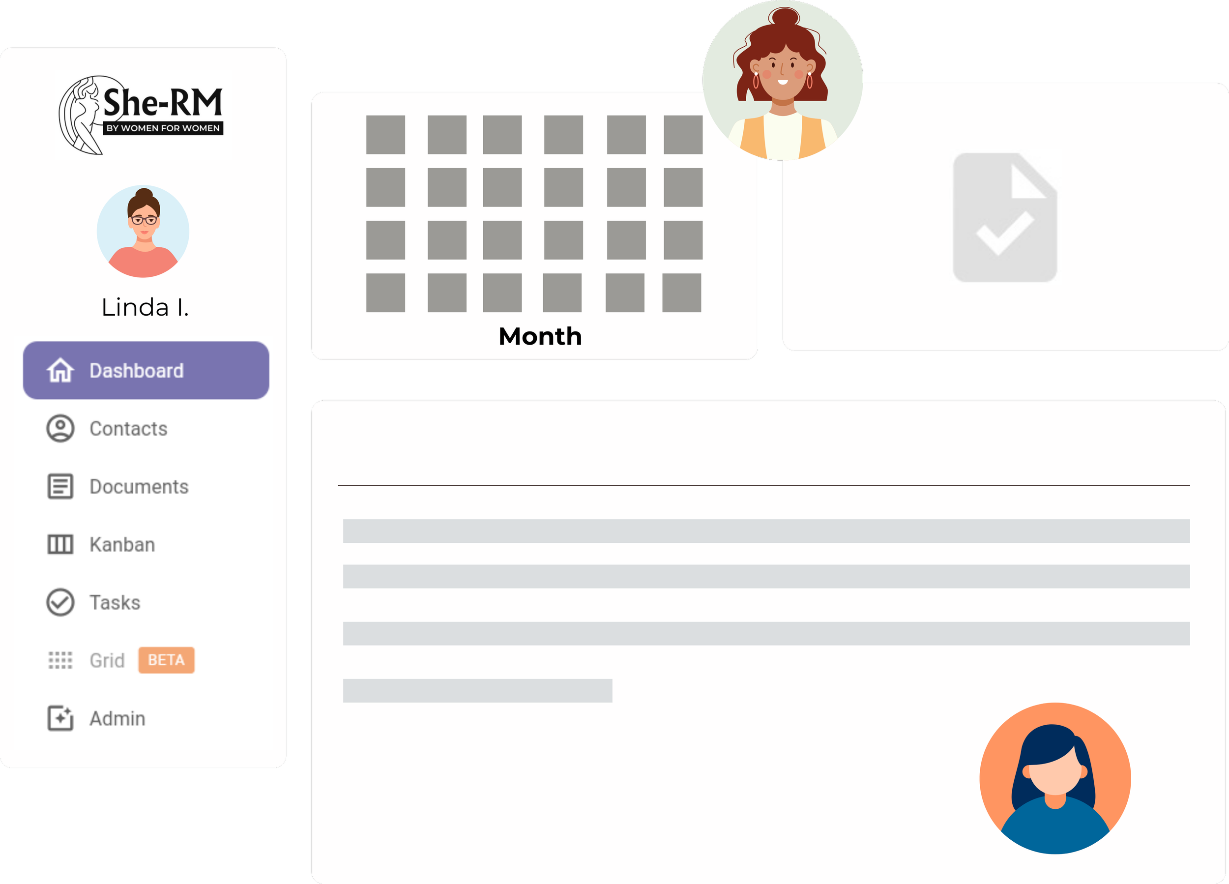 She-RM combines powerful functionalities with a unique female-centric approach designed to simplify your work and personal life. Here's what sets She-RM apart: